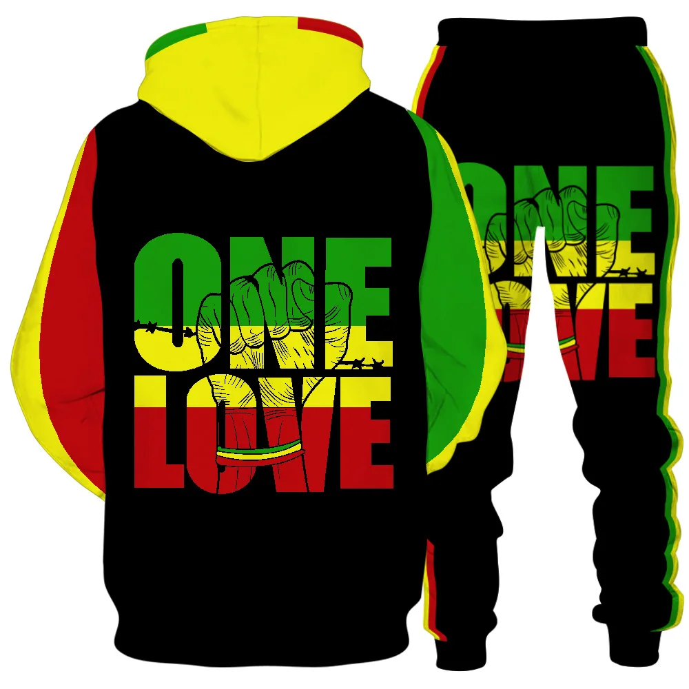 Vous recherchez quelque chose de différent dans votre équipement d’entraînement ? Découvrez l’ensemble pour hommes One Love Rasta ! Ce sweat à capuche et ce jogging uniques sont parfaits pour tout homme qui souhaite exprimer son style individuel. Le look cool et décontracté du sweat à capuche est parfait pour une journée décontractée à la salle de sport ou pour faire des courses. Cette tenue est fabriquée à partir de matériaux de haute qualité qui résisteront à vos entraînements les plus difficiles. Le tissu qui évacue l’humidité vous gardera au frais et au sec, tandis que le tissu extensible permet une gamme complète de mouvements. Que vous fassiez de la musculation ou de la course à pied, vous adorerez votre apparence et vos sensations dans cet ensemble One Love Rasta !